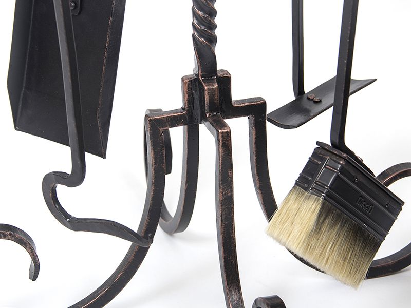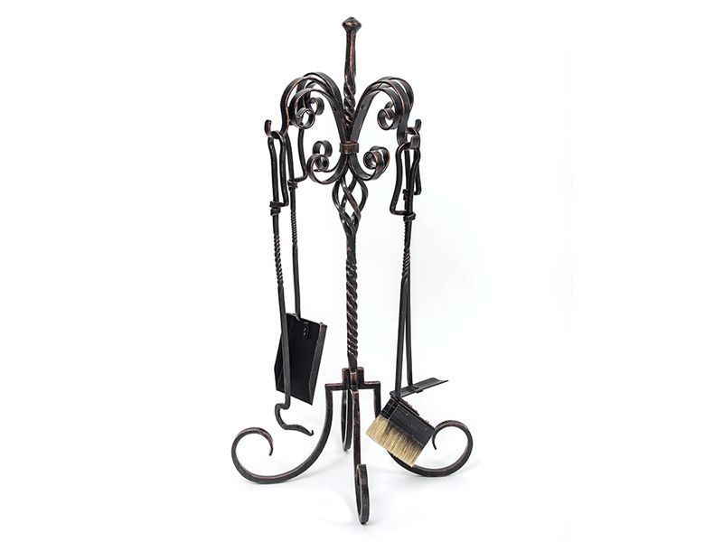 Accesorii pentru semineu din fier forjat, executate prin forjare manuala. Setul contine patru unelte. Marimi(latime x inaltime): 30 x 90 cm. Se poate executa si in marimea dorita.