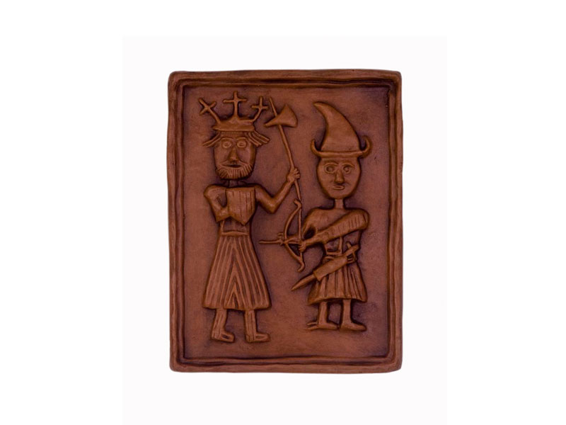 Cahla nesmaltuita, compozitia prezinta o scena de lupta intre Sfantul Ladislau, regele Ungariei si un razboinic din tribul cumanilor, reprezentare naiva din secolul al XVI-lea, Cecheni.