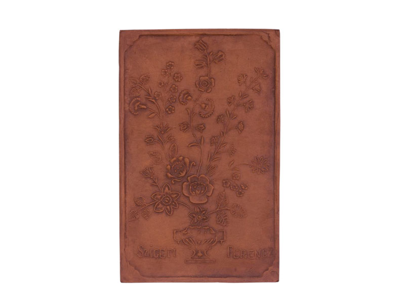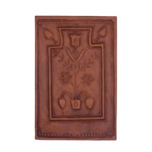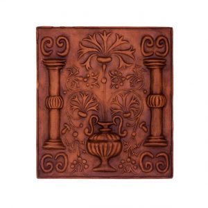Cahla dreptunghiulara, de format mare, pictata cu oxid rosu de fier, decor in relief cu vas elenistic si buchet de flori. Secolul al XIX-lea, Targu Secuiesc.