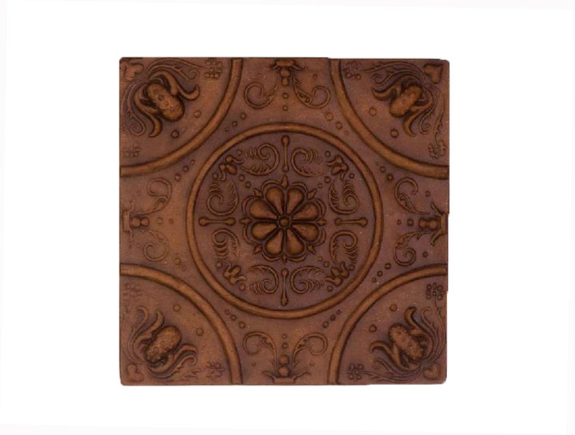 La cahlele de teracota decor rama laterala este amplasata la marginea placii, astfel se prezinta mult mai elegant ca placile de teracota cu rama normala.