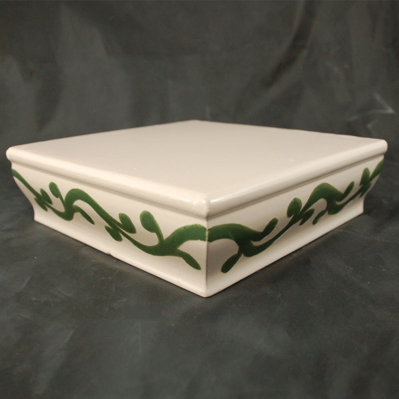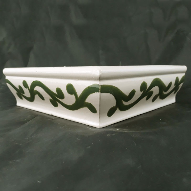 Colt cornisa pictat manual, pentru a fi folosit la constructia sobelor sau semineelor de teracota pictate. Culoarea de accent se alege in functie de culoarea cu care se picteaza placile si restul sobei.