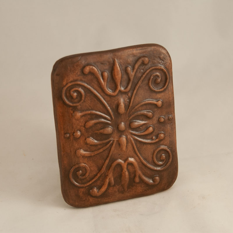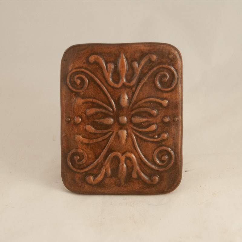 Decor postament fabricata manual prin presare in matrite de gips. Rolul ei principal este de a infrumuseti soba. Vine lipit in postamentul tencuit la sobele si semineele de teracota pe care le fabricam. Are rol decorativ, nu este parte functionala a sobei.