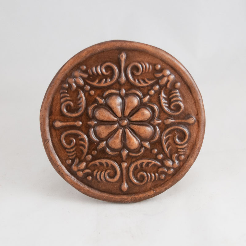 Decor postament fabricata manual prin presare in matrite de gips. Rolul ei principal este de a infrumuseti soba. Vine lipit in postamentul tencuit la sobele si semineele de teracota pe care le fabricam. Are rol decorativ, nu este parte functionala a sobei.