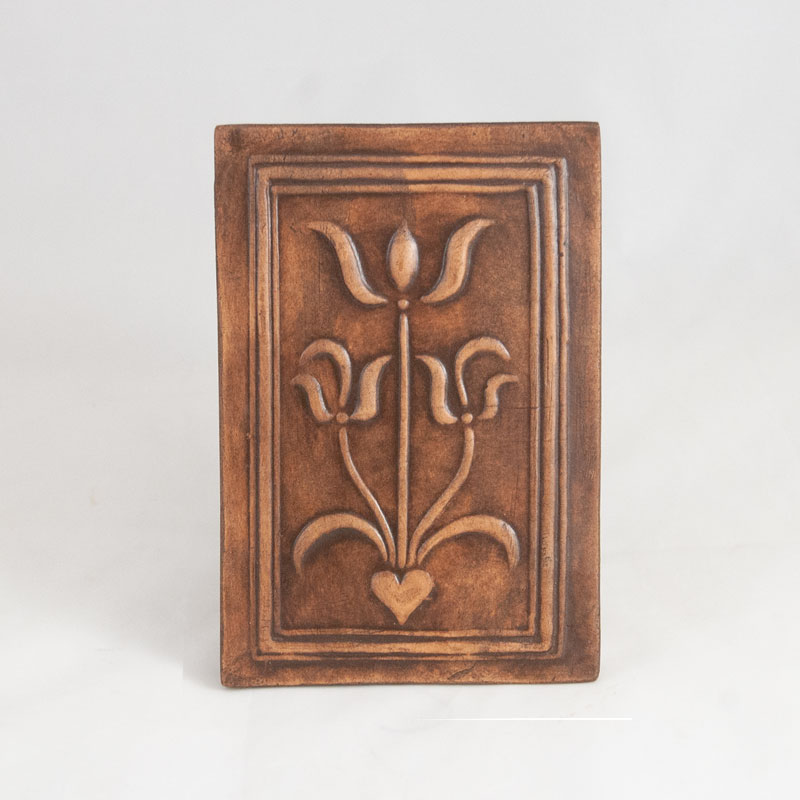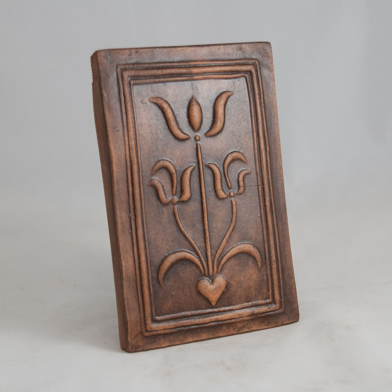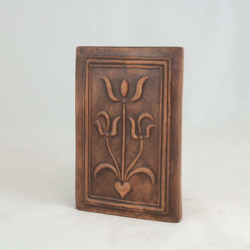 Decor postament fabricata manual prin presare in matrite de gips. Rolul ei principal este de a infrumuseti soba. Vine lipit in postamentul tencuit la sobele si semineele de teracota pe care le fabricam. Are rol decorativ, nu este parte functionala a sobei.