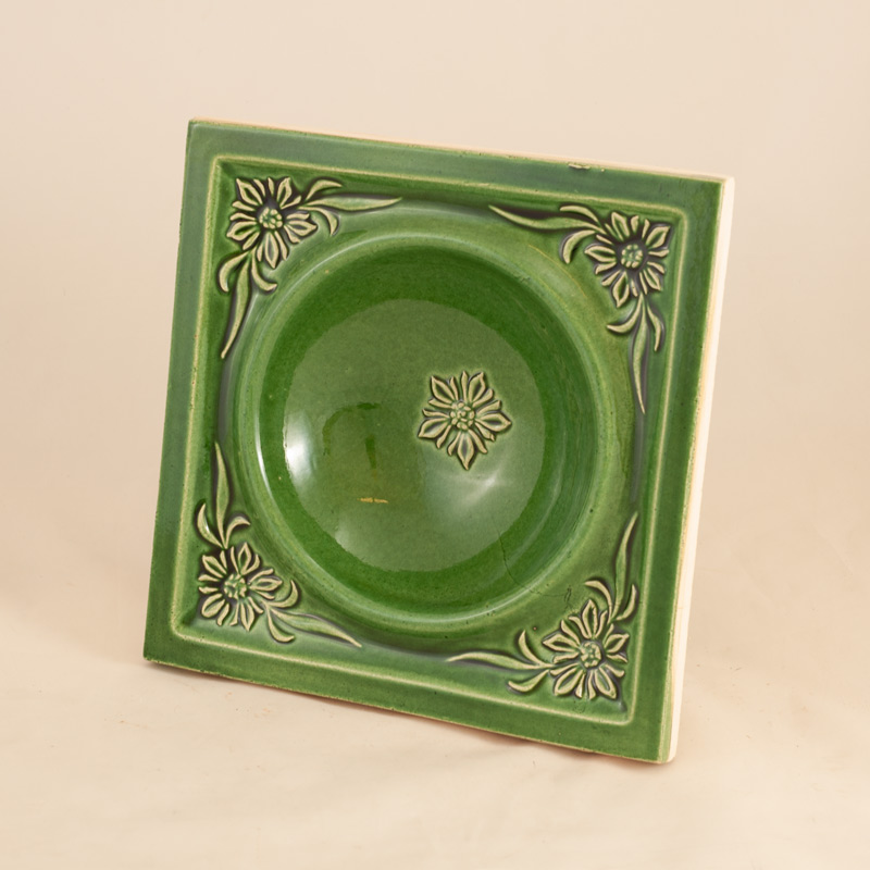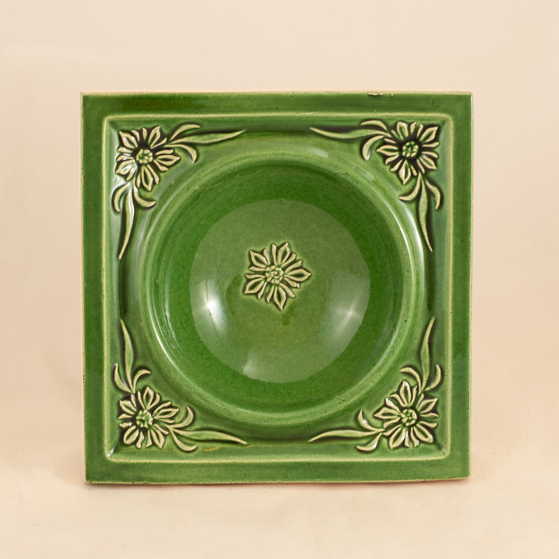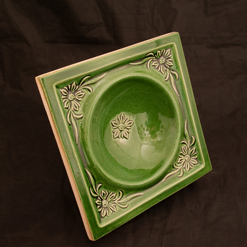 Placa teracota cu centrul adancit, pentru a creste suprafata de radiere a caldurii, ornamentata cu decor floral. Se poate comanda in toata gama de culori din sorrtimentul nostru.
