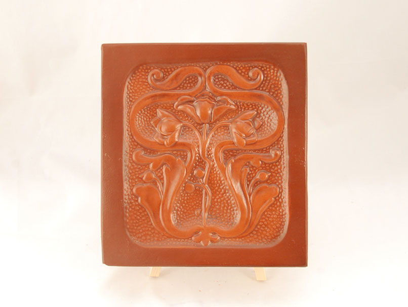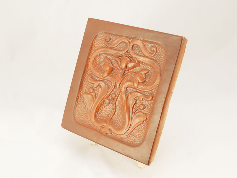 Cahla nesmaltuita, de dimensiune mica, decorata cu ornamente florale. Secolul al XIX – lea, Targu Secuiesc. Dimensiuni: 19, 5 x 21, 5 cm.