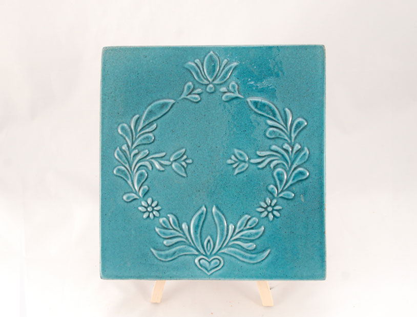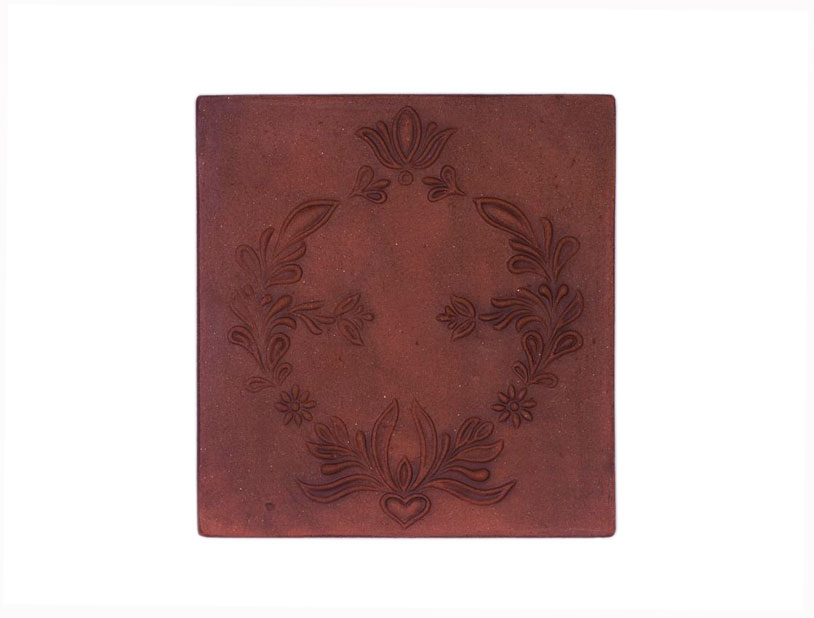Cahla de dimensiuni reduse, decorata cu o coroana de flori inaltandu-se dintr-o inima. Cahla inspirata dintr-o placa de teracota apartinand unui centru de olarit din Targu Secuiesc, secolul al XIX-lea. Se fabrica prin presare manuala in matrite din gips.