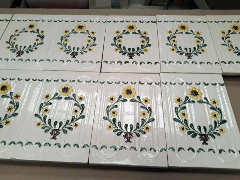 Anumite cahle sunt semnate in partea superioara – idős Beretzki Zsigmond – (Beretzki Zsigmond cel batran), realizat cu cornul cu oxid de cobalt.