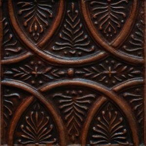 Cahla de teracota cu dimensiunile 23 x 23 cm, inspirata dintr-o placa de teracota apartinand unui centru de olarit din Targu Secuiesc, secolul al XIX-lea.