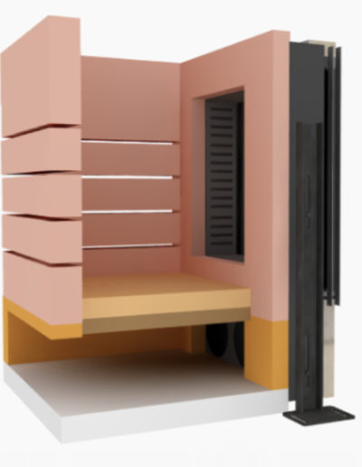 Model de usa pentru sobe de teracota avand o ardere eficienta. Este prevazuta cu sticla termorezistenta dubla, astfel pierderile de temperatura prin sticla sunt minime. Astfel temperatura de ardere din focar va fi mult mai inalte, implicit eficienta arderii va creste. Pentru o ardere completa avem insa nevoie si de mult oxigen. Aceste usi fiind prevazute cu admisie de aer exterior, contribuie la o ardere intensa, la temperaturi inalte. Aerul pentru ardere se introduce in corpul usii si urca in rama. Ea intra in focar prin orificiile amplasate la diferite inaltimi, astfel vom avea turbulenta optima in focar.